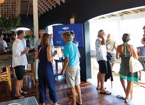 Peter Williams, Editor-in-Chief JamaquePARADIS Magazine, presents to Oyster Yachts CEO, Ashley Highfield a handmade crochet piece by Jamaican artisans to celebrate Oyster Yachts 50th Anniversary, April 2023
