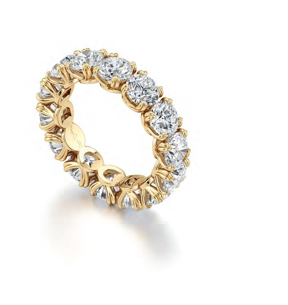 JEAN DOUSSET ELLE ROUND BRILLIANT LAB DIAMOND ETERNITY BAND: Founded by the greatgreat-grandson of Louis Cartier, Jean Dousset officiated his bespoke fine jewellery collection with a showroom in Los Angeles. This eternity band is handcrafted with colourless lab diamonds that are held by a double-prong setting, an exclusive detail of the Elle capsule. To radiate light from every diamond, the inside of the band is completed with our signature ‘D’ cutout detail. Enduring brilliance made to last a lifetime. jeandousset.com