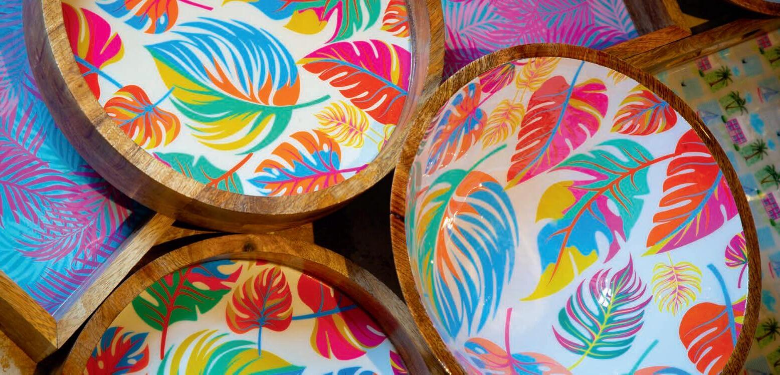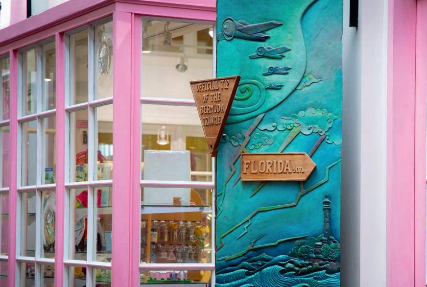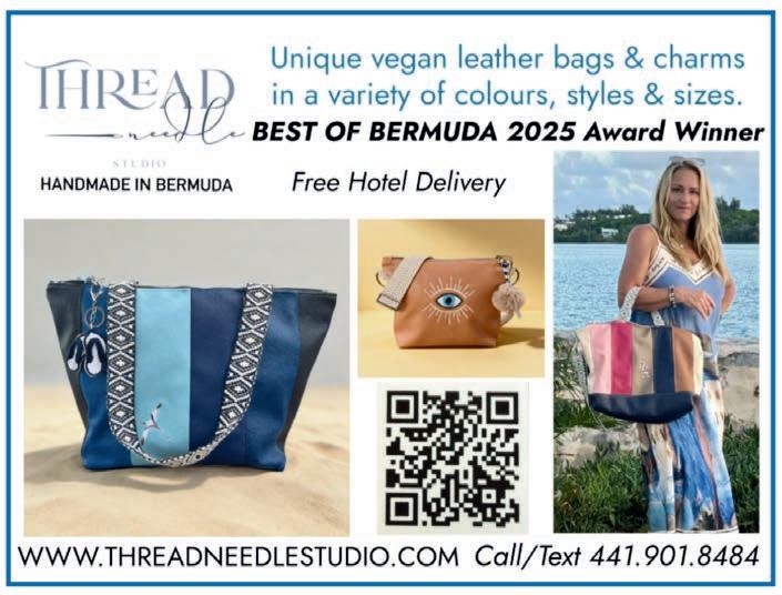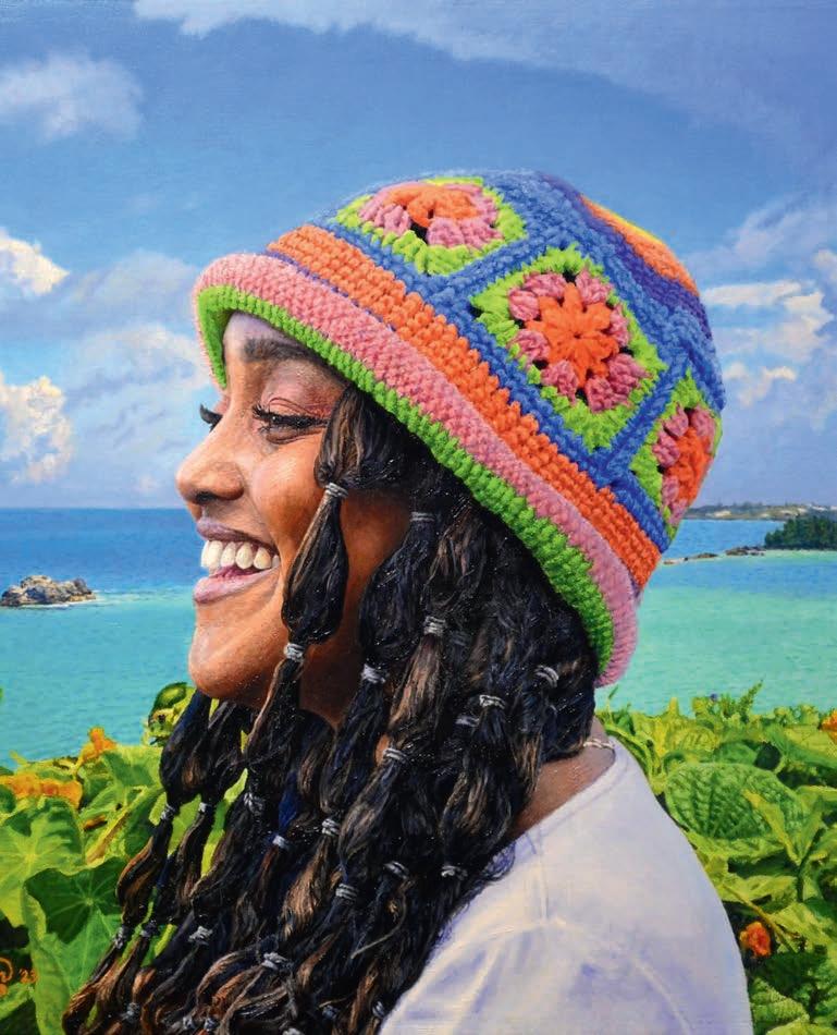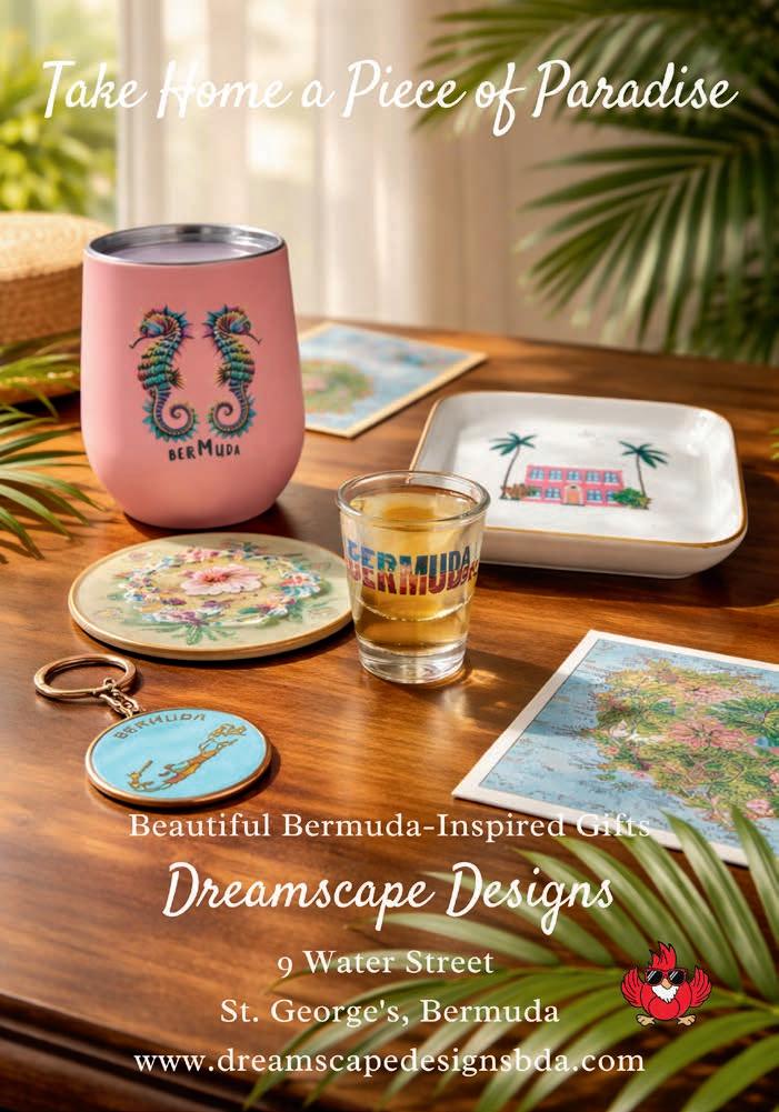 It Takes a Village by Bermudian artist Shanna Hollis is a vibrant tribute to the island’s everyday magic. Inspired by her childhood memories — from ferry rides to Dockyard and shopping in Hamilton to kite flying, sailing, and spotting longtails along the coast — each motif captures the shared experiences that shape Bermuda’s unique identity. Learn more about this talented artist on page 38.