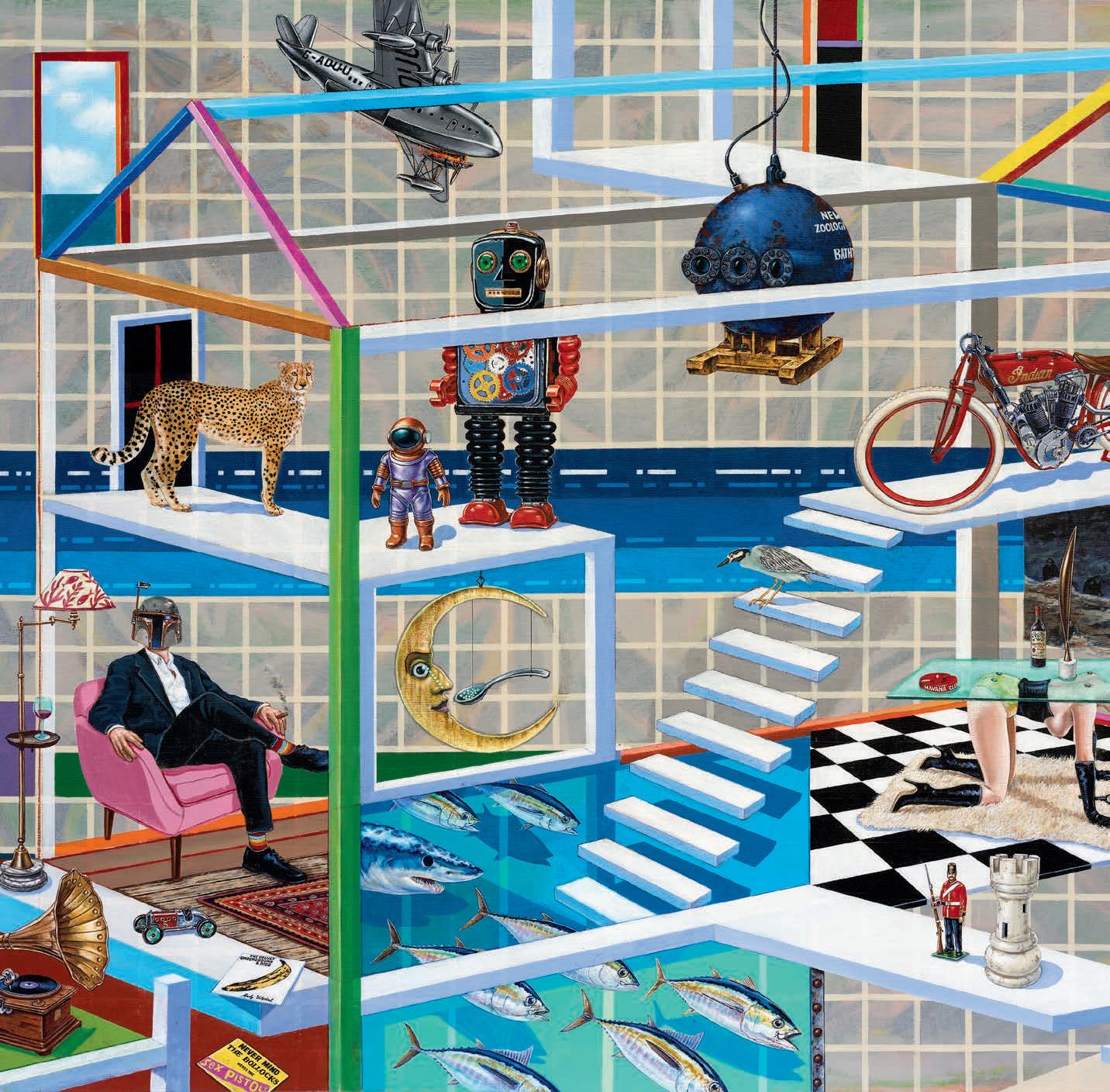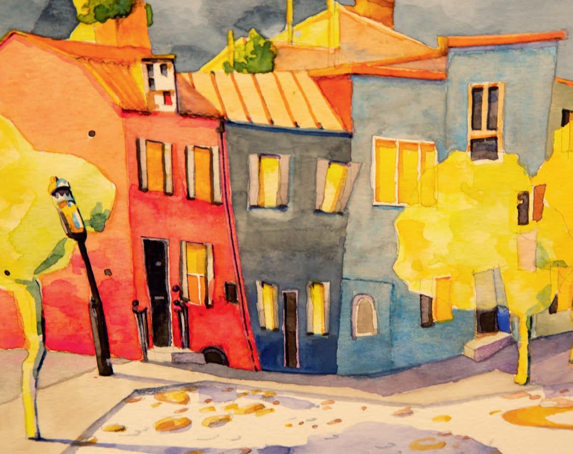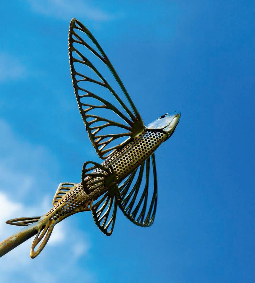 It Takes a Village by Bermudian artist Shanna Hollis is a vibrant tribute to the island’s everyday magic. Inspired by her childhood memories — from ferry rides to Dockyard and shopping in Hamilton to kite flying, sailing, and spotting longtails along the coast — each motif captures the shared experiences that shape Bermuda’s unique identity. Learn more about this talented artist on page 38.