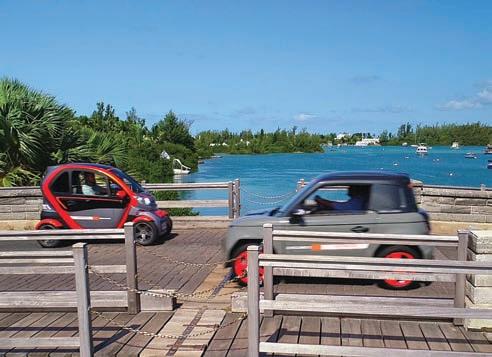 from Bermuda Rental Car Ltd. (236-2453; www.bermudarentalcar.com), Bermitime (519-9255; www.bermitime.com), Current Vehicles (296-8949; www.currentvehicles.com), or Rugged Rentals (705-7368; www.ruggedrentalsbda.com). Typical rates are around $175 to $225 per day. These electric cars can travel between about 70 to 170 km on a single charge, and recharging stations are found throughout the island. Visitors must be 25 years old and hold a valid car driver’s licence to rent and drive a vehicle.