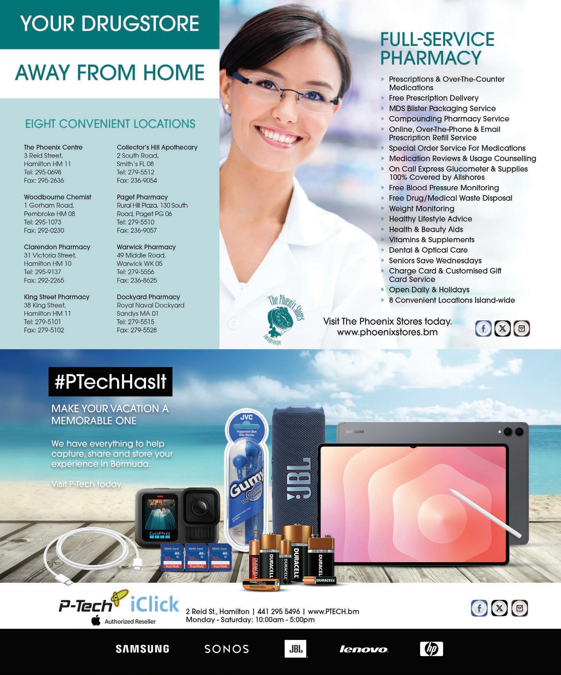 Renowned for its commitment to quality products and exceptional service, The Phoenix Stores Ltd. is a market leader across various retail segments, including prescriptions, health and beauty products, and newsstand publications. Each location offers emergency prescription dispensing and an extensive range of European and American over-the-counter medications. Additionally, customers will find health and beauty products, postcards, souvenirs, beach essentials, sun-care items, mobile phone cards, snacks, beverages, and magazines. All stores are open six days a week, with The Phoenix Centre, Collector’s Hill Apothecary, Paget Pharmacy,