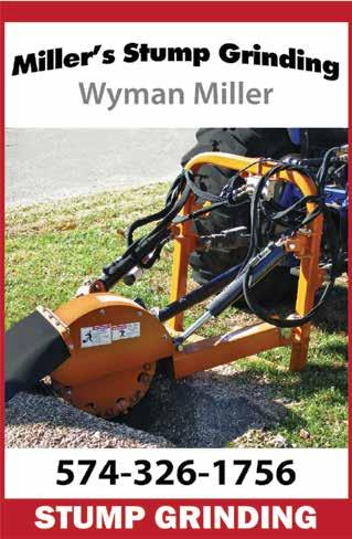 Optics & Hunting Supplies LLC Premier Carl Miller PO Box 106 115 E Warren St Middlebury, IN 46540 Ph: 574-849-0824 Hours: Mon-Fri 2-5; Sat 8-1 We deliver and ship daily! Call Us Today! (260) 463-0380 Our Specialty: Seed, Fertilizer, & Livestock Nutrition 3825 W 200 S Lagrange, IN 46761 NATE LEHMAN MILLERSBURG, IN 260-214-1172 DECORATIVE CURBING • MULCH • LANDSCAPING ROCKS SPECIALIZING IN DECKS, PORCHES, SIDING AND SMALL REMODELS. GENE BEACHY • (574)361-6747 HOMETOWNBUILDERS18@GMAIL.COM