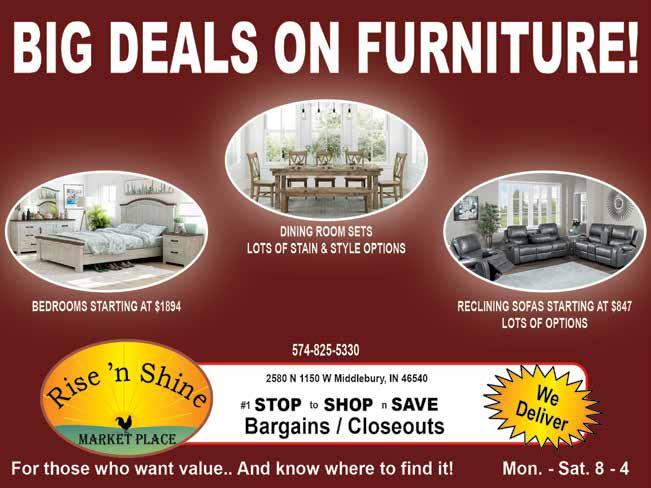 EMAIL: MICHIANASHOWCASE@GMAIL.COM • 574-674-5197 MICHIANASHOWCASEMAGAZINE.COM PAGE 98 10460 W US 20 • Shipshewana, IN 46565 | Kenneth Otto • VM (260) 768-4977 EXT. 2 Store Hours: Mon-Thurs 1 - 5pm • Fri 1 - 4:30pm • Sat 8am - Noon