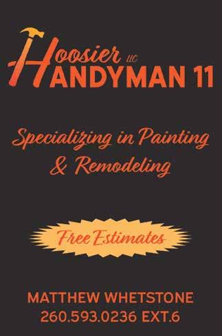 EMAIL: MICHIANASHOWCASE@GMAIL.COM • 574-674-5197 We’ll unpack the paperwork. So you can unpack… everything else. Get moving at interracu.com/mortgage. NMLS# 623379 "Will the road you're on get you to my place?"…God Bill’s Long Reach excavating call Bill Miller 260.336.0775 Will dig new ponds or clean existing ponds, ditches, etc. 260-585-9691 Tim’s Excavating • Bulldozer & Backhoe Services • Driveways • Stump Removal • Tree Line Clearing • Ditch Cleaning • General Excavating