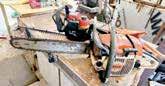 gasoline Hit and Miss 3.5 hp engine; Horizontal metal band saw; Echo gas-powered hedge trimmer;