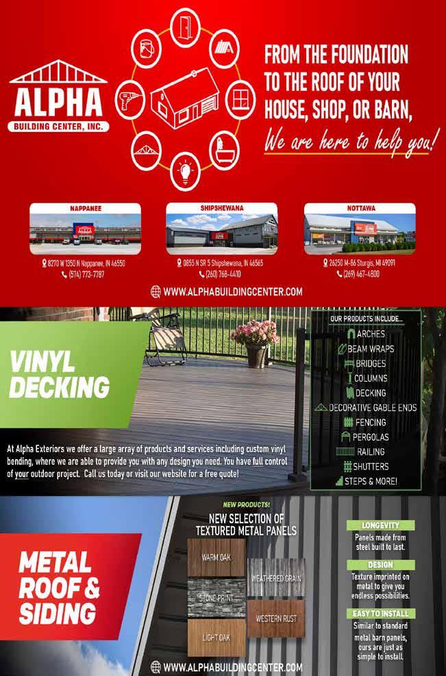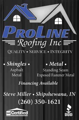 EMAIL: MICHIANASHOWCASE@GMAIL.COM • 574-674-5197 PAGE 115 Making Every Job A Masterpiece Competitive Pricing • Free Estimates Lifetime Warranty • Financing Available Larry Schlabach 2510 S 250 W • LaGrange, IN 46761 Office (260) 463-2675 • Fax (260) 463-3676 STANDING SEAM STEEL ROOFING GIVE US A CALL TODAY | (260) 463-2675