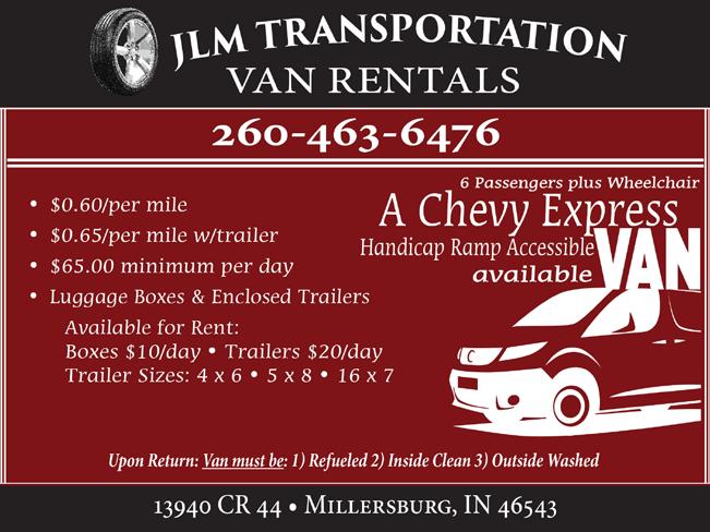 EMAIL: MICHIANASHOWCASE@GMAIL.COM • 574-674-5197 MICHIANASHOWCASEMAGAZINE.COM PAGE 16 BEARINGS BRAKES AXLES ELECTRICAL FABRICATION RESTORATIONS FLEET MAINTENANCE DOT INSPECTIONS INSURANCE CLAIMS COME SEE US AT, 1040 N 925 W SHIPSHEWANA IN, 46565 SERVICE CENTER 7’X14’ MORITZ INT. COMMERCIAL GRADE TORSION AXLES OPTIONS Available