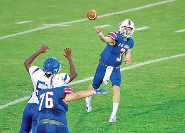3: Pinecrest nished o a clean sweep of its non-conference schedule, winning its fourth straight of the year, 35-3, at home against New Hanover. It’s the rst 4-0 start to a season for the Patriots since 2019.