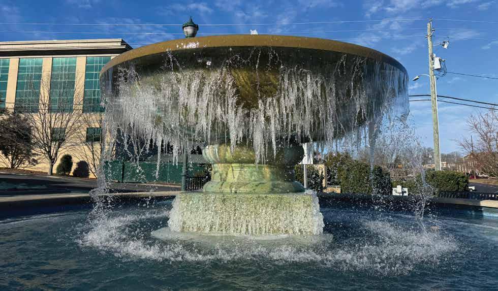 The water fountain outside the Asheboro Public Library was turned into an ice sculpture last Friday morning as temperatures dropped as low as 19 degrees. Far more ice and snow could be in the forecast for this weekend.