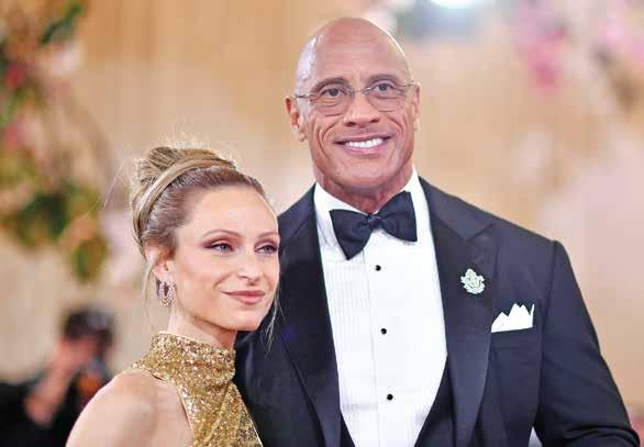 Lauren Hashian, left, and Dwayne Johnson arrive at the 83rd Golden Globes on Jan. 11 at the Beverly Hilton in Beverly Hills, California. The couple stars in “The Smashing Machine,” which comes to HBO Max this week.