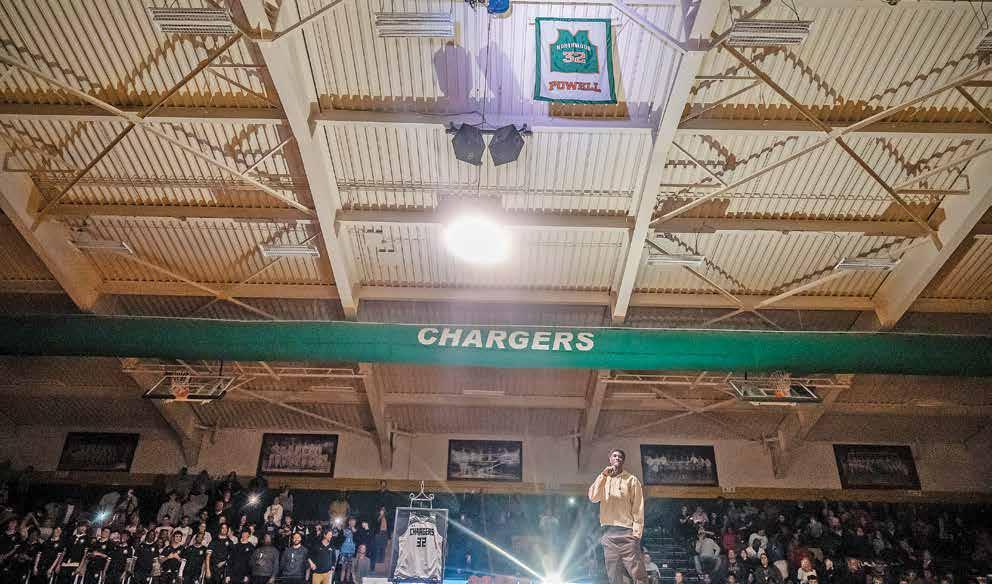 Brooklyn Nets rookie Drake Powell speaks to the crowd during his number retirement ceremony before Northwood 20-point win over Uwharrie Charter in Pittsboro last Thursday.