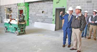 JSCC President Shannon Hair, left, shows N.C. Senator Brent Jackson one of the large rooms inside the new Workforce Development Center that is expected to be completed in May.