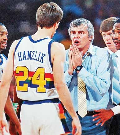 Former Denver Nuggets head coach Doug Moe pleads with his team during a timeout in the closing seconds of a 1986 game.