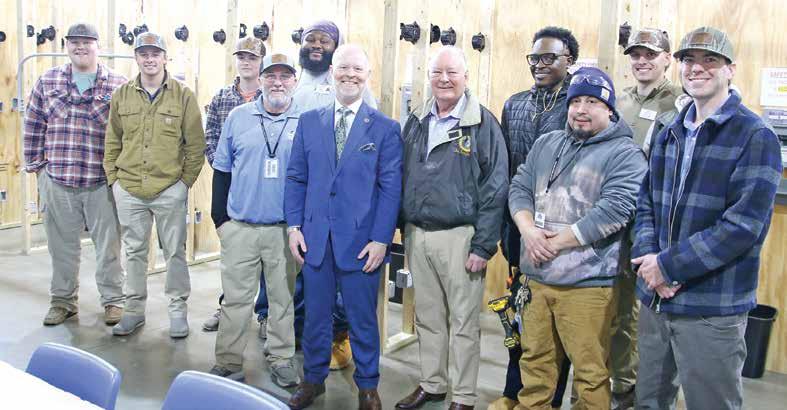 Sen. Brent Jackson toured the nearly completed Workforce Development Center at James Sprunt Community College on Monday, meeting faculty and students from the electrical program. Jackson, front row center, is joined by JSCC President Shannon Hair, left, and Electrical Systems Technology Instructor Philip Anderson, far left, along with students and other faculty from the program. Turn to A2 for more.
