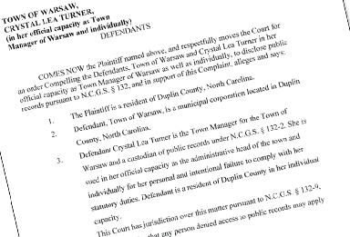 mental justice chair for the Duplin County NAACP, has led a complaint in Duplin County Superior Court seeking the release of public records from the Town of Warsaw.