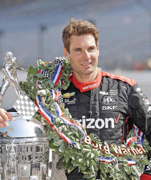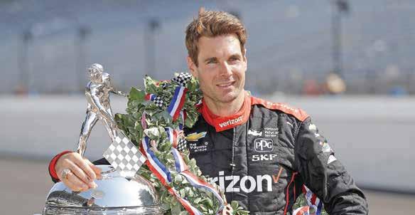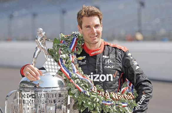 Indianapolis 500 champion Will Power, of Australia, poses with the trophy after winning