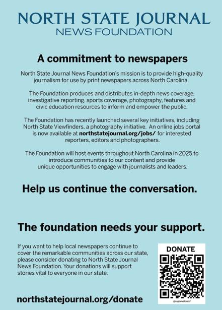 North State Journal was unable to locate IRS lings or North Carolina Secretary of State records for In uence NC and Feinglos Fund. The only tax-related ling found for Feinglos Fund was under the Durham Public Schools Foundation, where Feinglos’s name was listed as a board member.