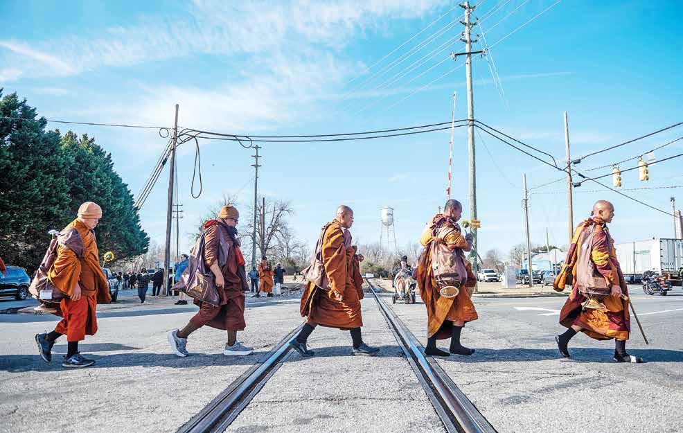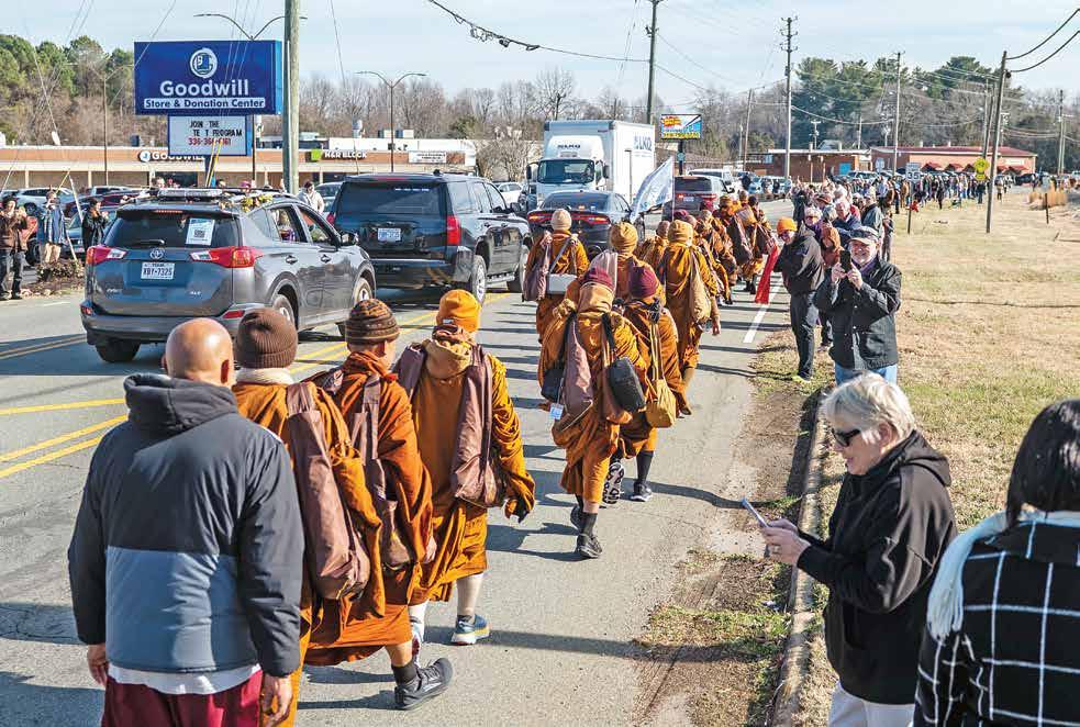 The Theravada Buddhist monks’ 2,300-mile Walk for Peace from Fort Worth, Texas, to Washington, D.C., took them through North Carolina the past two weeks. Day 88 of their trek saw them greeted by crowds in Liberty on Jan. 21.