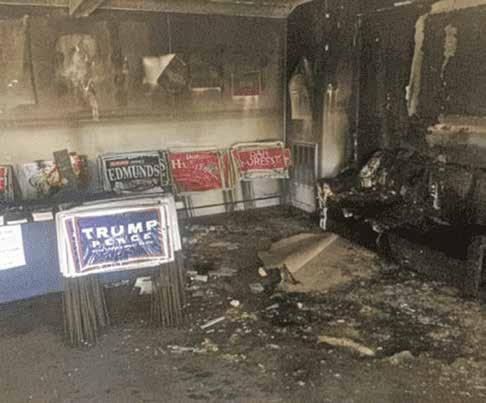 While the outside was vandalized, the inside was lled with soot and ash due to a re caused by a Molotov cocktail thrown into the building through a window.