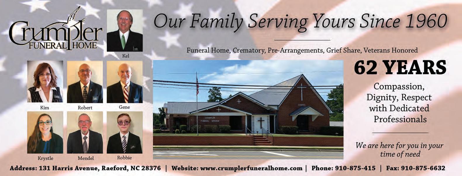 SPONSORED BY BOLES FUNERAL HOMES & CREMATORY Locations in: Southern Pines (910) 692-6262 | Pinehurst (910) 235-0366 | Seven Lakes (910) 673-7300 www.bolesfuneralhome.com Email: md@bolesfuneralhome.com CONTACT @BolesFuneralHomes Celebrate the life of your loved ones. Submit obituaries and death notices to be published in NSJ at obits@northstatejournal.com
