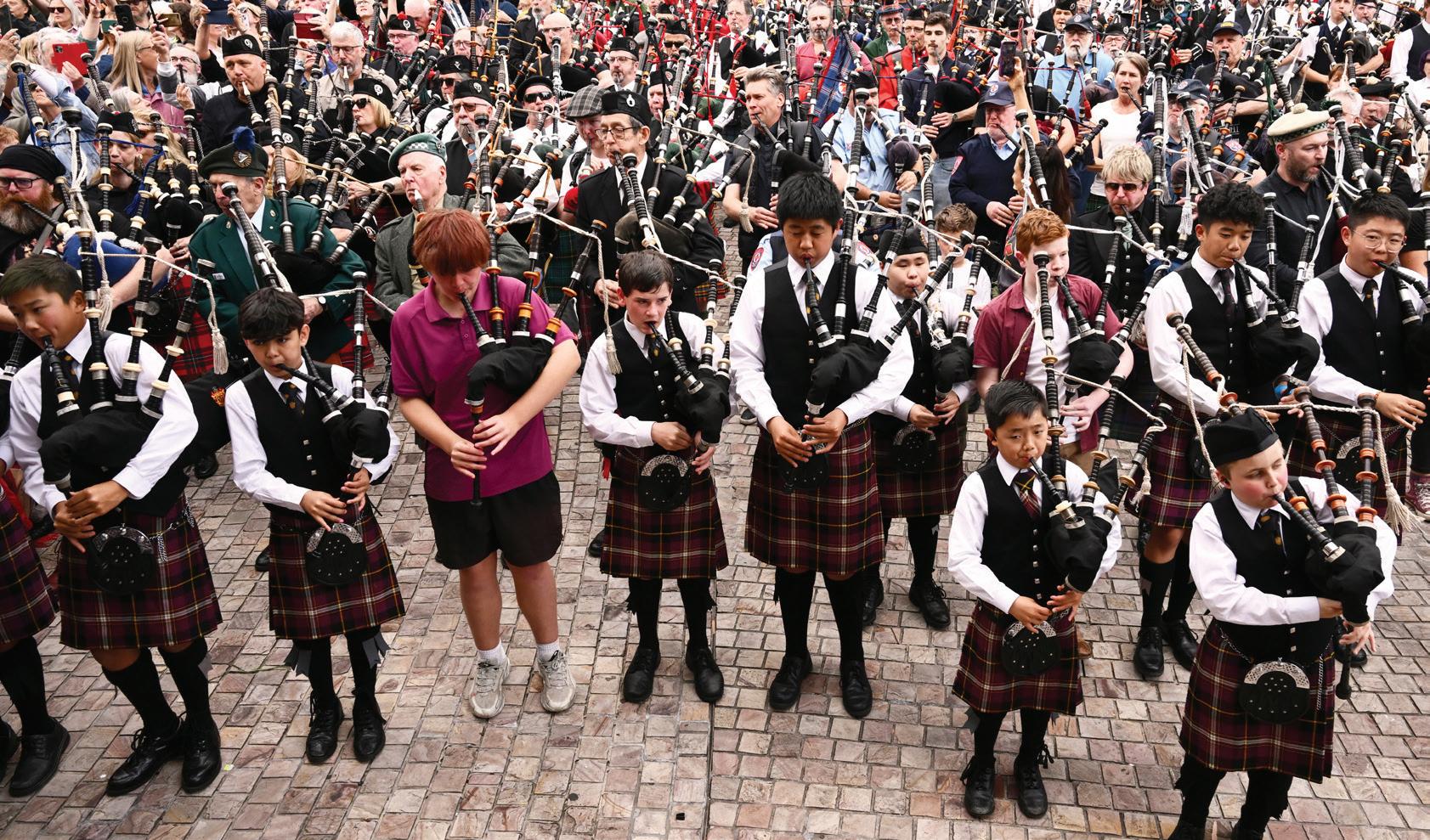 Having been declared world record holders, the massed pipers played “Happy Birthday” on request, followed by an impromptu “Amazing Grace” to a cheering crowd, many using their phones to record the moment.