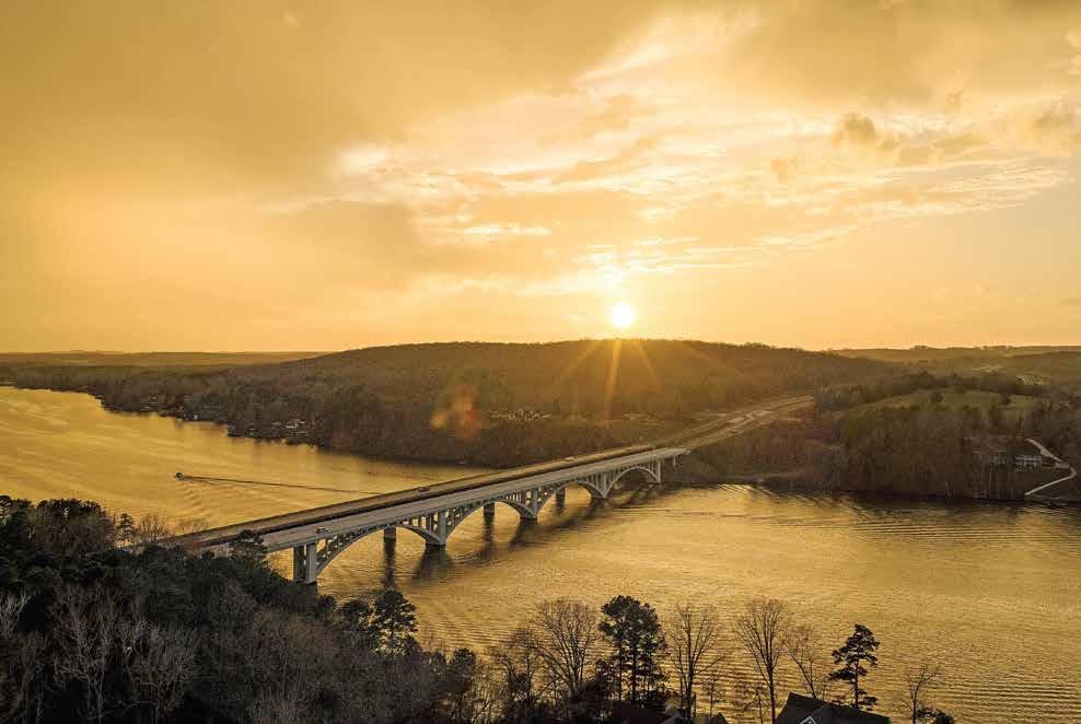 The sun sets over Lake Tillery and the James B. Garrison Bridge, looking southwest from Montgomery County toward Stanly County on March 7. The bridge carries N.C. 24/27/73 across the lake between the two counties.