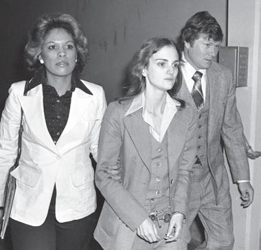 Patty Hearst, center, leaves the federal building in San Francisco hours after her sentencing on a bank robbery for which she was convicted on March 20, 1976.