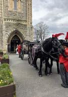For someone who had spent a lifetime organising funerals, it was appropriate that Peter had very clear wishes about his funeral. His funeral took place on Wednesday, 18th February 2026 at 12pm, arriving in style by horse-drawn carriage at Holy Trinity Church, Llandudno. The service was full of memories, hymns and readings chosen by Peter.