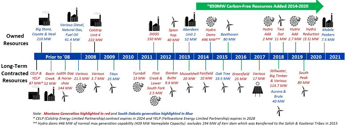 The table at the bottom of the page illustrates how effective NorthWestern has been in acquiring both cost‑effective and environmentally sustainable generation for our portfolios. In fact we have added about 850 MW of carbon‑free generation between 2014 and 2020.