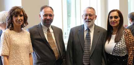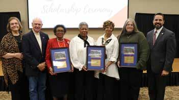 Foundation board members (l-r) Debbie Perkins and Sterling Withers and Dr. Michael J. Heindl (far right) honor the Moore, Fondren and Honeycutt scholarship endowments.