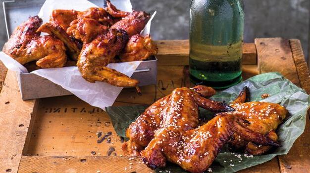 Bre kyllingvingene utover flere stekebrett med bakepapir og stek ett og ett brett høyt i ovnen til vingene blir sprø og gylne, ca. 5 minutter.
