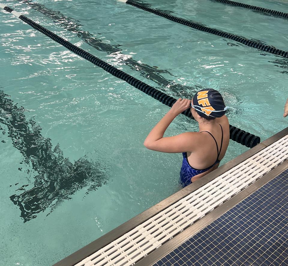 One of the swimmers, Elise Fitzgerald, shared her experience on the team. “I already swim at Lifetime, but my mom said that it would be fun to do it at NFA. Also, my friend joined, so I decided to do it,” she said. The NFA swim team provides a great opportunity for both experienced and new swimmers to