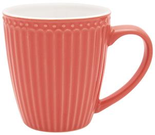 1 Latte cup Columbine white H: 9 cm. 2 Latte cup Laurie pale pink H: 9 cm. 3 Latte cup Alice dusty rose H: 9 cm. 4 Mug Alice dusty rose H: 10 cm. 5 Creamer Columbine white H: 8 cm.