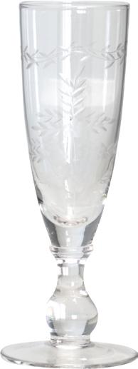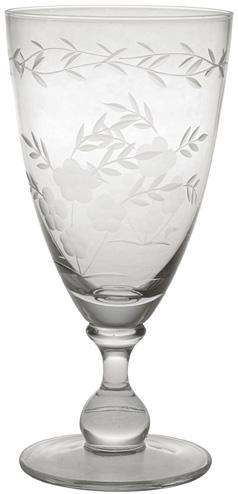 17 Water glass Alma flowers white H: 9,5 cm. 18 Wine glass clear with cutting and gold small H: 15 cm. 19 Wine glass clear with cutting and gold large H: 16 cm. 20 Champagne glass clear with cutting and gold H: 20 cm.