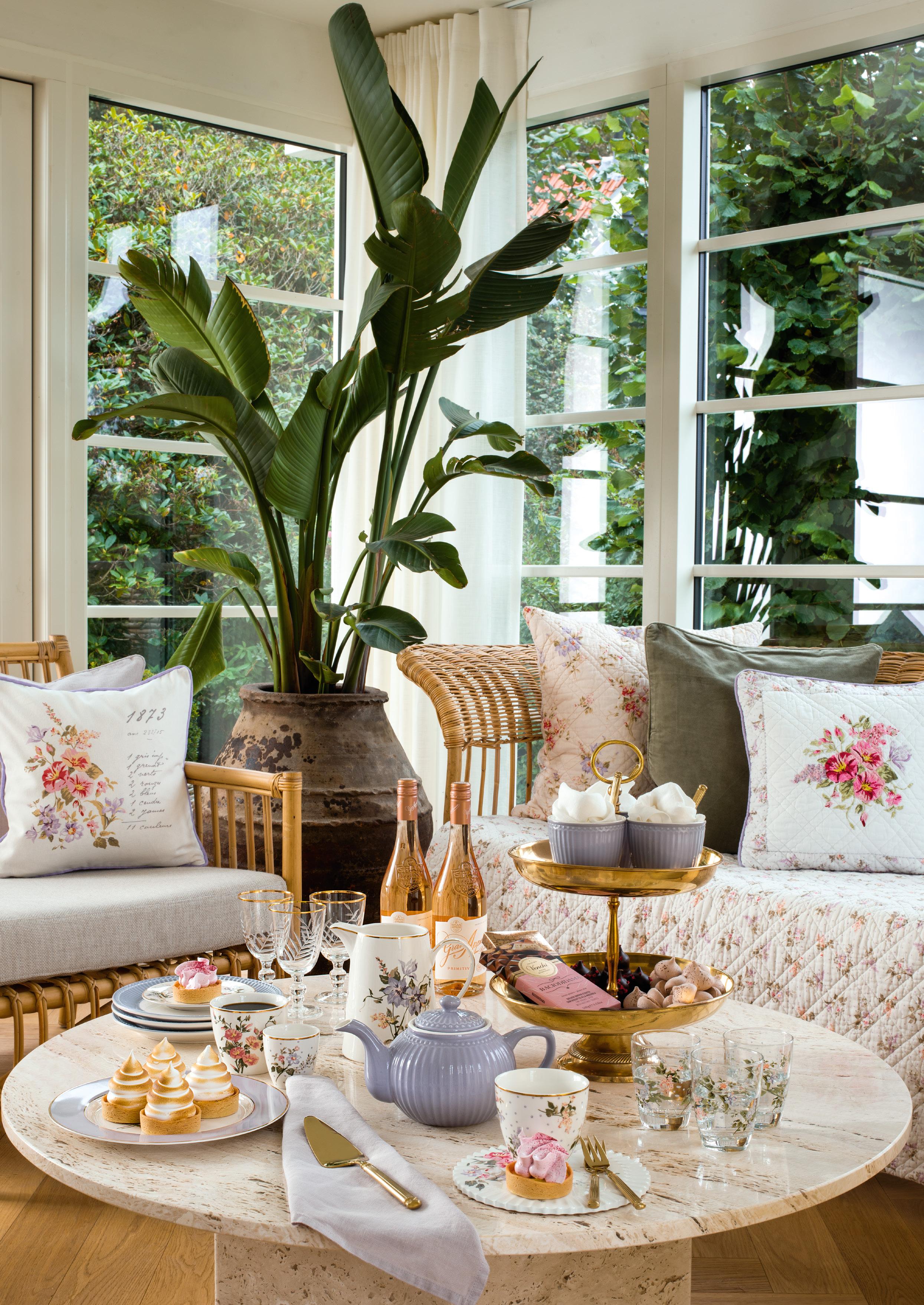 Table runner Columbine white 45x140 cm. 9 Tea towel Alvilda 50x70 cm. 10 Cake server gold L: 24,5 cm. 11 Cake stand Columbine pale pink small D: 20 cm. 12 Cake stand Columbine pale pink medium D: 31 cm. 10 11