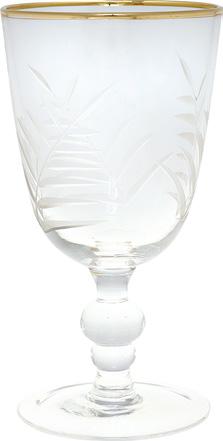 11 Water glass clear with cutting and gold H: 10,5 cm. 12 Wine glass clear with cutting and gold small H: 15 cm. 13 Wine glass clear with cutting and gold large H: 16 cm. 14 Champagne glass clear with cutting and gold H: 20 cm. 15 Napkin ring round gold set of 6