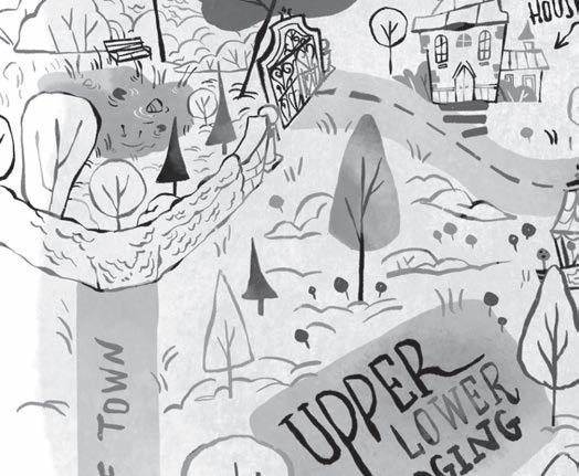 Kevin’s dad pointed at a part of the map that was marked NOWHERE . The edge of Nowhere was bordered by a meandering blue line.