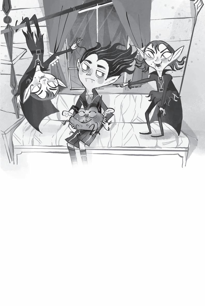 Silus and Sylvia giggled as Kevin picked up Dog and clambered out of the carriage window and up on to the roof. They knew he couldn’t turn into a bat and always teased him about it. It wasn’t Kevin’s fault. Bat transformation was a lot harder than it looked. The last time he’d tried he’d turned himself into a box of doughnuts, which Silus and Sylvia had teased him about for days.