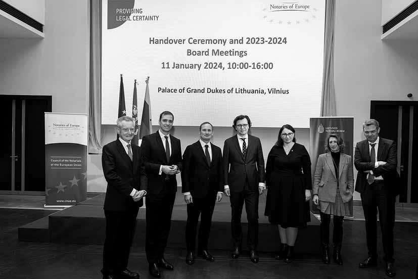 notariato stiprumą ir profesionalumą, bet ir įpareigoja kurti Europos notariato ateitį. Per ateinančius metus Lietuva taps esminiu veiksniu Europos notariatų darbe, prisidedant prie Europos notariatų raidos ir įsipareigojant užtikrinti geresnes sąlygas Europos Sąjungos piliečių teisiniam gyvenimui, teisinių paslaugų prieinamumui ir vartotojų apsaugai. Lietuvos notariato vaidmuo ir patirtis bei jų reikšmė gali būti puikus pavyzdys suinteresuotų valstybių įstatymų leidėjams daugiau pasitikėti notarų darbo kokybe, efektyvumu, o svarbiausia – patikimumu. Šis iškilmingas įvykis reprezentuoja ne tik Lietuvos notariato pasiekimus, bet ir viso Europos notariato bendradarbiavimo stiprinimą.