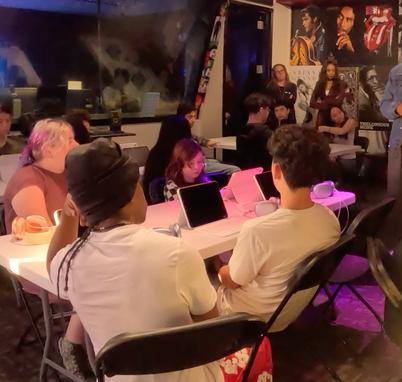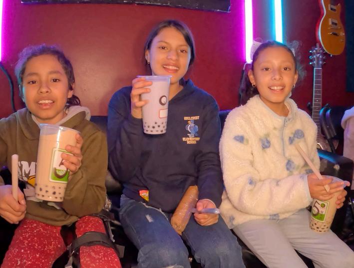 m o s t i m p o r t a n t l y o u r y o u t h . A l e x a , B r i t h a n y , L e o , a n d X o c h i l t a r e c e l e b r a t i n g t h e p u b l i c a t i o n o f t h e i r s o n g w i t h b o b a d r i n k s a n d s n a c k s , s i n g i n g w i t h p u r e p r i d e a n d j o y .