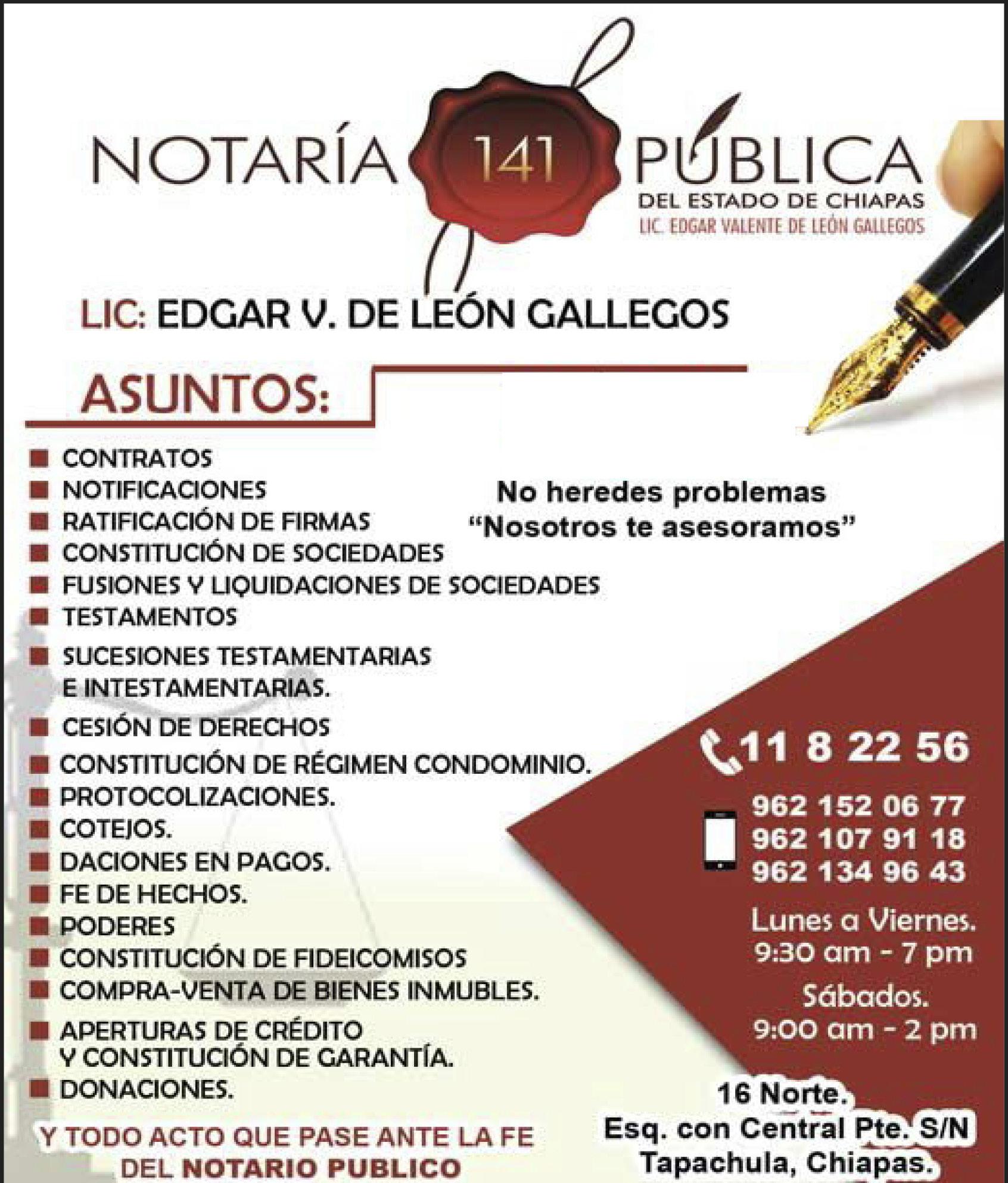 Noticias de Chiapas El poder de la noticia, se imprime en los talleres de Editorial La Estrella, S.A. de C.V., con domicilio en 2a. Av.Sur Número 100 C.P. 30700, Tapachula, Chiapas.