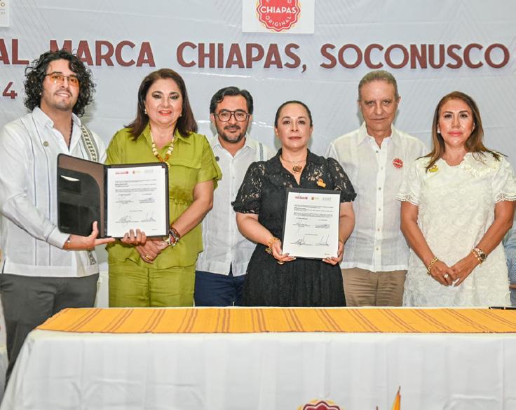 En el foro organizado por la Secretaría de Economía y del Trabajo del Estado de Chiapas y el Consejo Regulador de la Marca Chiapas Asociación Civil, la presidenta municipal de Tapachula, Gladiola Soto Soto con la representación del gobierno municipal y el presidente del Consejo Marca Chiapas, Fernando Zepeda Trujillo signaron el convenio ante la presencia del presidente de la Asociación Civil de Marca Chiapas, Rómulo Farrera Escudero, empresarios, políticos y emprendedores.