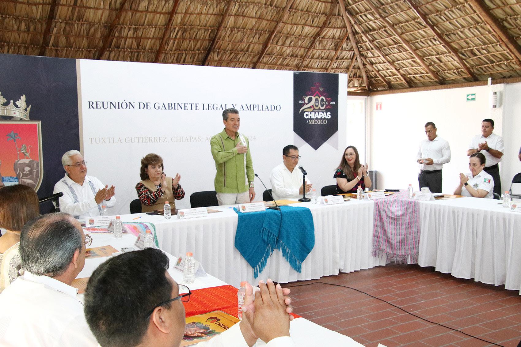 20 de agosto.-En la reunión de Gabinete Legal y Ampliado, el gobernador Rutilio Escandón Cadenas sostuvo que faltan pocos meses para el cierre de gobierno, por lo que convocó a las y los titulares de las dependencias estatales a trabajar con responsabilidad y compromiso a fin de dejar finanzas sanas y una administración pública ordenada y eficiente que permita a las próximas autoridades continuar con las acciones a favor del bienestar, el crecimiento y el progreso de Chiapas.