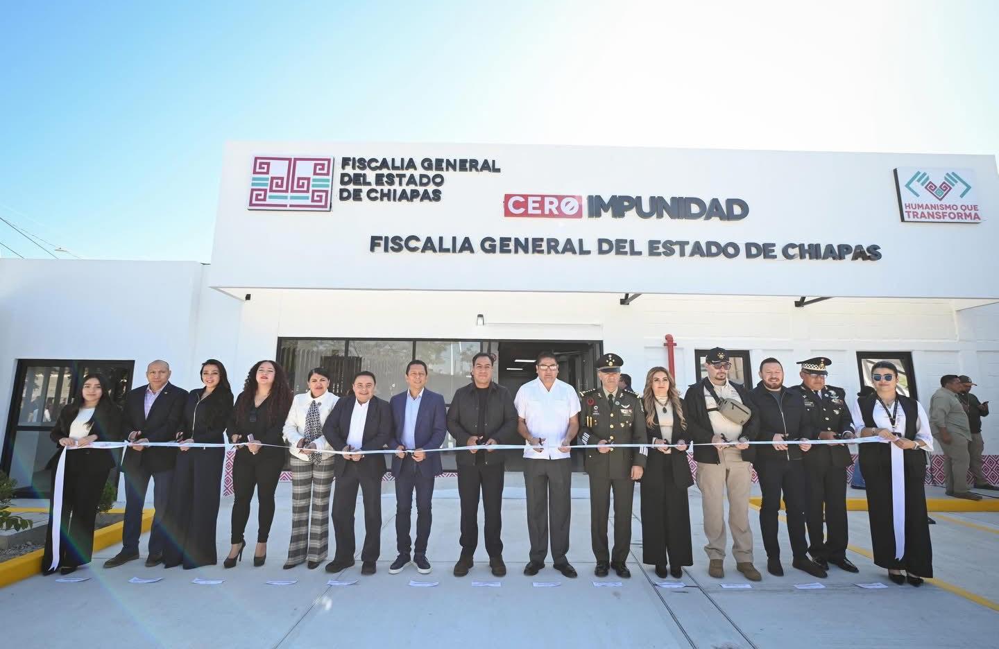 Tuxtla Gutiérrez, Chiapas; 3 de febrero de 2026.El gobernador Eduardo Ramírez Aguilar, junto al director de Atención a Víctimas de la Unidad Antisecuestro y Antiextorsión de la Secretaría de Seguridad y Protección Ciudadana (SSPC) federal, José Luis Rojas Rivera; y el fiscal general del Estado, Jorge Luis Llaven Abarca, encabezó la inauguración de las instalaciones de la Fiscalía de Investigaciones Estratégicas, donde se puso en marcha la Unidad Especializada para Combatir el Delito de Extorsión así como el relanzamiento de la app “No te enganches ¡Cuelga y denuncia!”.