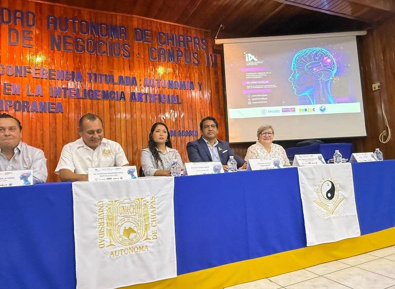 Tapachula, Chiapas, 01 de septiembre de 2025.– El director general de la Agencia Digital Tecnológica del Estado de Chiapas (Aditech), Jovani Salazar Ruíz, asistió a la Quinta Conferencia de la Cátedra Universitaria de Inteligencia Artificial Plus “Dr. Francisco Cervantes Pérez”, celebrada en la Benemérita Universidad Autónoma de Chiapas (Unach).