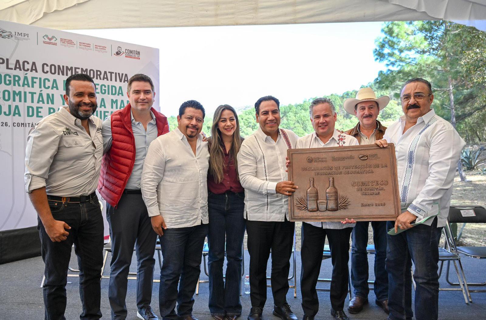 Comitán de Domínguez, Chiapas; 22 de enero de 2026.En Comitán de Domínguez, el gobernador Eduardo Ramírez Aguilar, acompañado por el director general del Instituto Mexicano de la Propiedad Industrial (IMPI), Santiago Nieto Castillo, encabezó la entrega de la placa conmemorativa de la Indicación Geográfica Protegida del Comiteco de Comitán, Chiapas, así como el reconocimiento de la marca “Reina Roja de Palenque”.