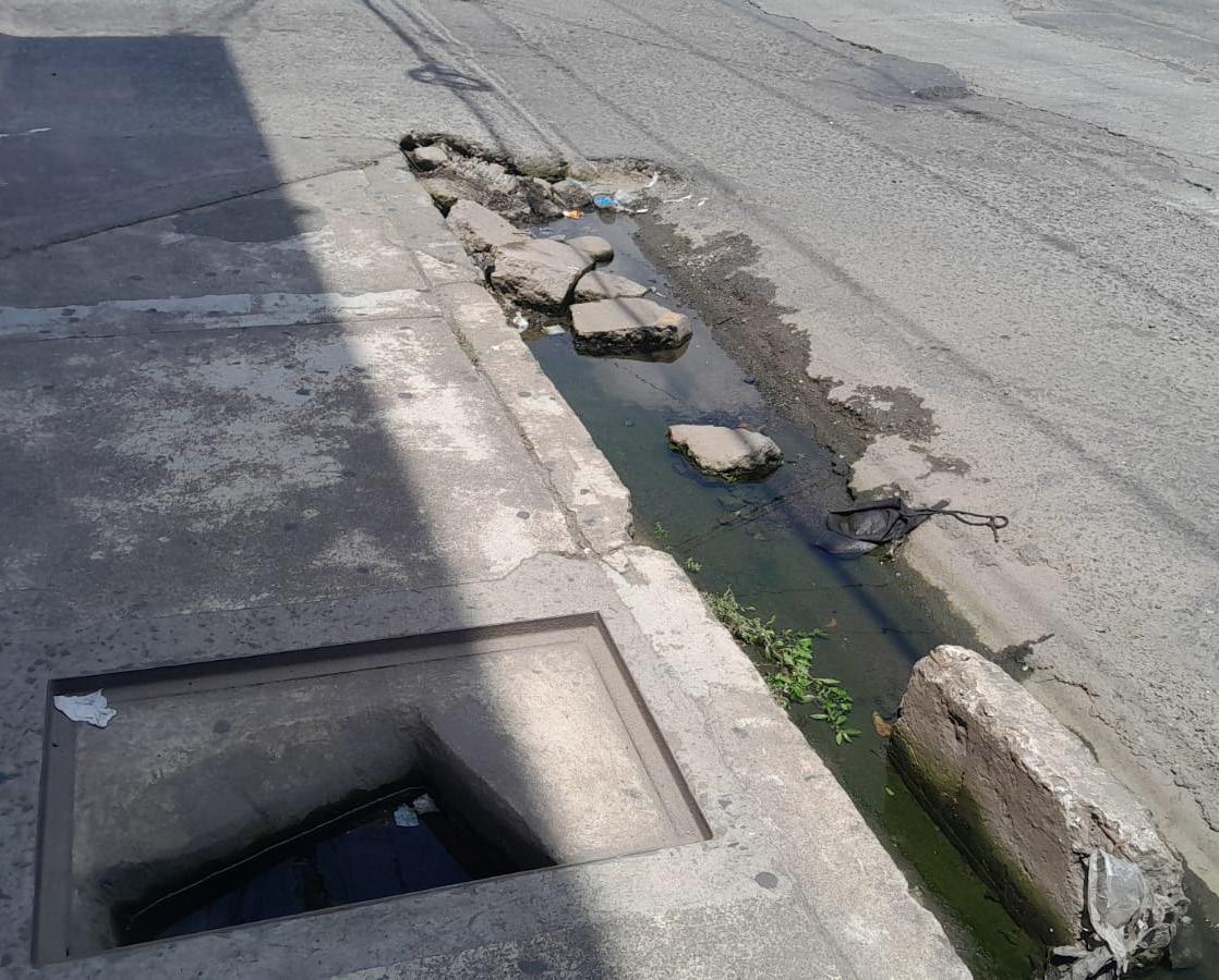 En el sector de la 12ª Avenida Sur, abundan los baches, alcantarillas sin tapa, ríos de aguas negras, éstas últimas contaminan el ambiente y los alimentos en los diversos puestos de comida que hay en ese sector.