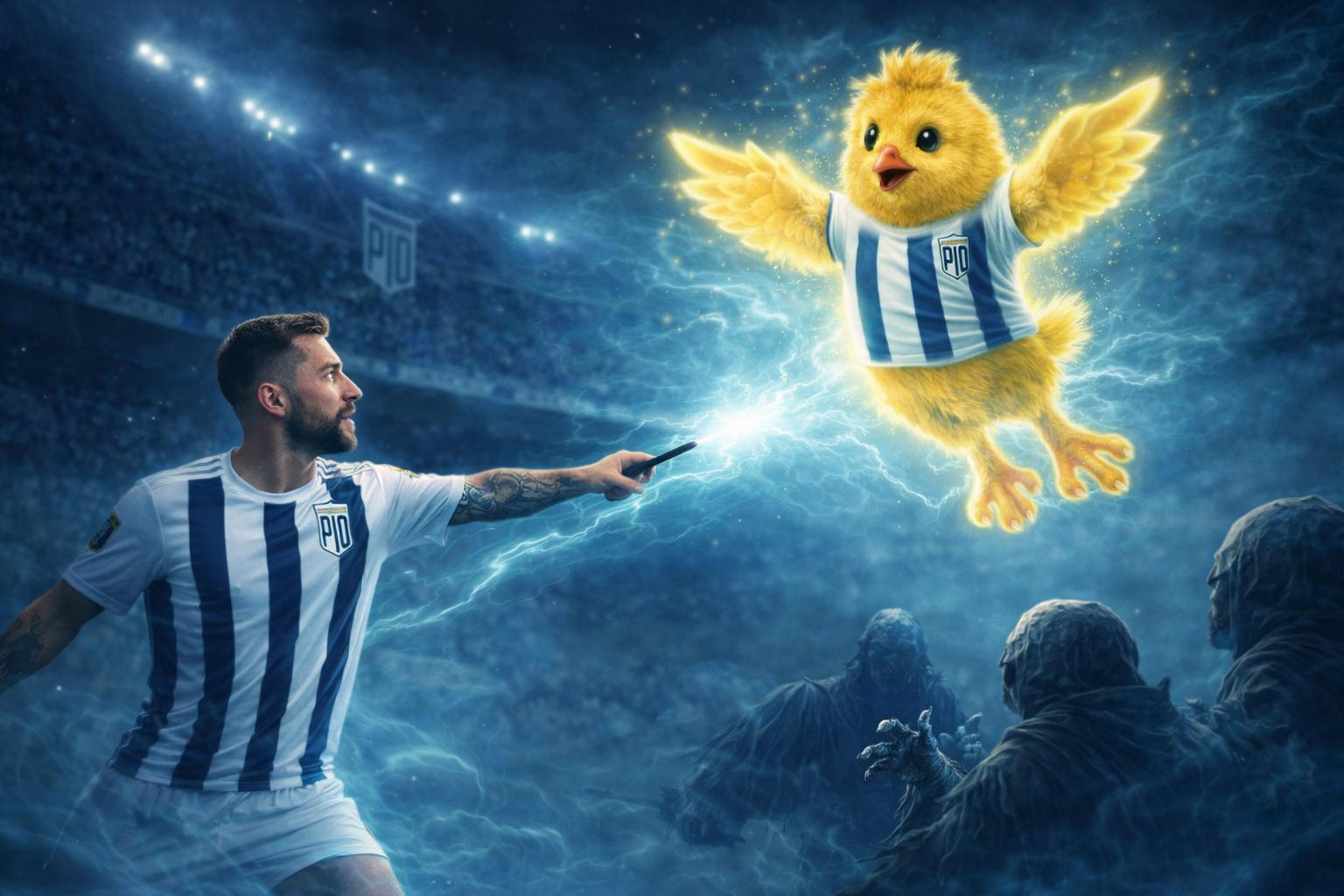 Imagen ilustrativa del despertar de PIO FC: Pollón como patronus protector, la afición como magia y la mentalidad que cambió el destino del partido.