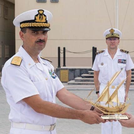 2021. L’Italia ha quindi deciso di investire significativamente nella missione assu mendone il Comando Tattico, dopo aver contribuito nel 2021 con la partecipazione di nave Martinengo. Un impegno destinato a consolidarsi ulteriormente attraverso l’imminente inclusione di nave Thaon Di Revel nella TF 474, oltre al regolare coinvolgimento di altre unità operanti in area attraverso la formula del supporto associato. Non a caso, a testimonianza del rapporto sinergico tra i vari assetti coinvolti in operazioni diverse, ma con l’obbiettivo comune della sicurezza e stabilità dell’area, a far da cornice alla cerimonia di passaggio di consegne presso la base francese di Al Salam Camp era presente anche nave FASAN, flagship di “EUNAVFOR Somalia - operazione Atalanta”.
